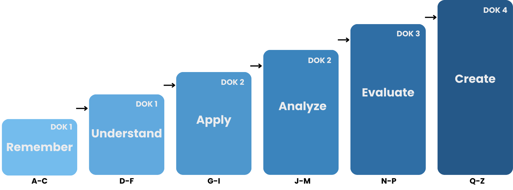 Bloom’s Taxonomy defines the type of thinking, while Webb’s Depth of Knowledge defines the complexity—together ensuring intentional, increasing cognitive rigor.