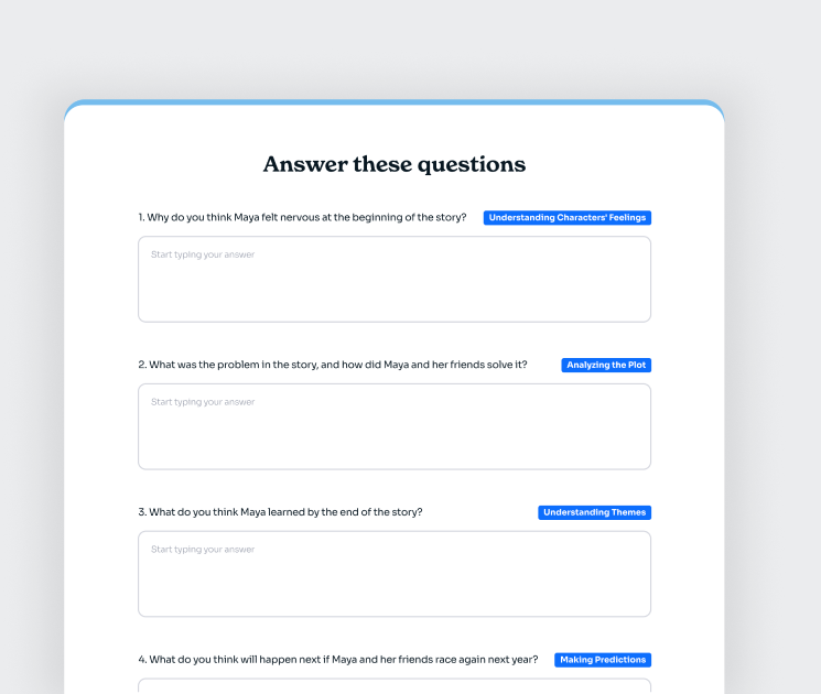 After reading each story, the child will be prompted with five questions to test their comprehension. Whether printed or on screen, these questions hone in on key story elements that build essential skills critical to mastering reading fluency.